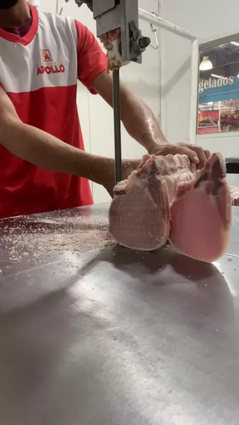 Cortando bisteca no açougue