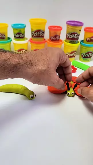 Uma Lagarta e uma Borboleta de massinha.