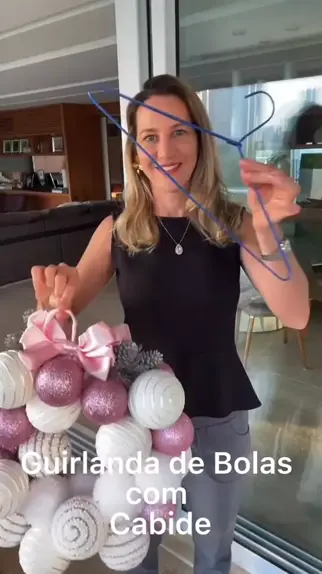 Como fazer guirlanda de bolas com um cabide! Já aproveite e marca aquele amiga pra aprender junto.🎅🎀😍 Quantas curtidas e comentários essa decoração merece?🎅🎄🌲🎀😍 #guirlanda #guirlandadebolas #guirlandadenatal #natal #festadenatal