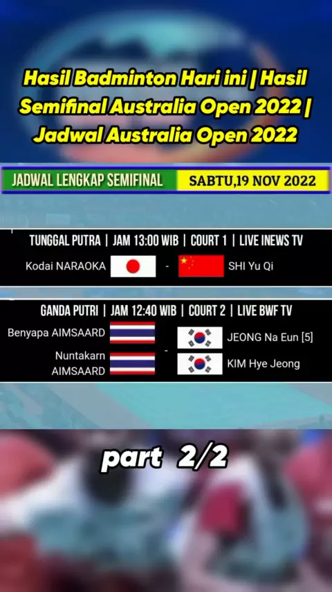 Hasil Badminton Hari ini | Hasil Semifinal Australia Open 2022 | Jadwal Australia Open 2022