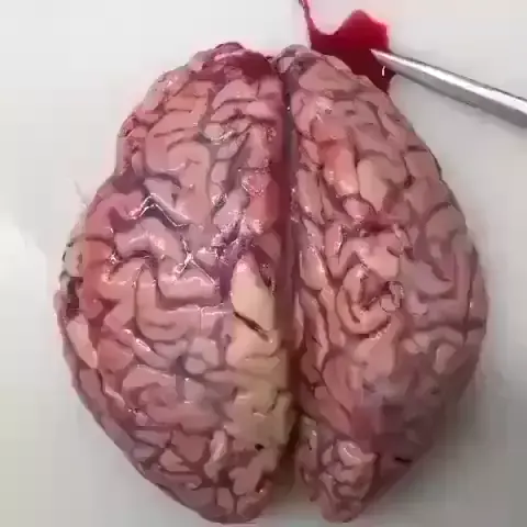 Hemorragia intracerebral descoberta durante autópsia cerebral após a vacina. Os coágulos de sangue vão para o cérebro.