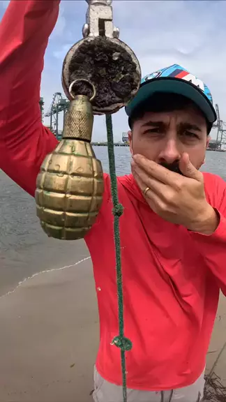 Achei uma granada dentro do mar #pescamagnetica #praia