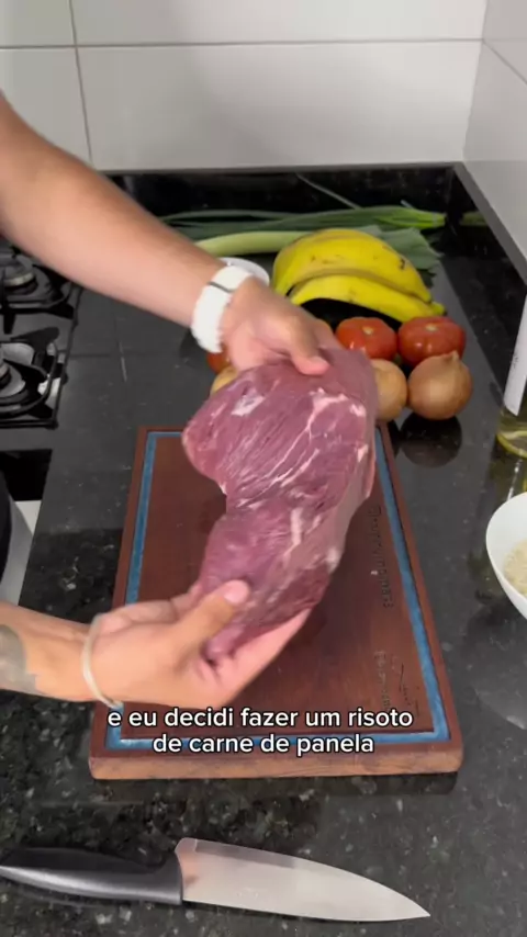 Risoto de carne de panela com banana da terra 馃い馃馃徎