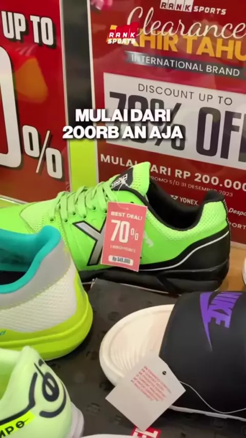 Ada yang Super Hemat di Akhir Tahun buat kamu, Merapat Sob! Pas banget di Rank Sports lagi ada CLEARANCE AKHIR TAHUN, Nikmati promo yang tersedia spesial untuk #SobatRank mulai dari Disc up to 70% dan Sepatu dari harga 200rb an aja Sob untuk International Brand! Promo ini bisa dibeli dengan datang langsung ke outlet Rank Sports terdekat ya!๐๐ผ๐๐ผ #RankSports #Promo #Discount #LevelUpYourGame