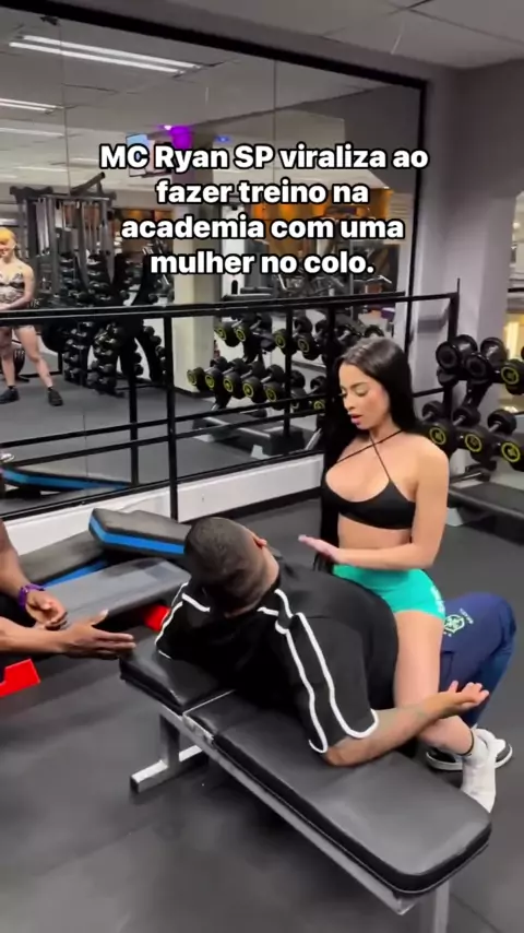 MC Ryan SP viraliza ao fazer treino na academia com uma mulher no colo. #EstrelaDeFamília