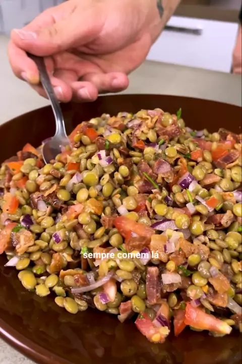 Lentilha da Prosperidade: a receita que vai trazer sorte em 2023! 🤑 INGREDIENTES: - 250 g de lentilha - 1 folha de louro - 1 linguiça calabresa - 200 g de bacon - 2 tomates - 1 cebola roxa - Salsinha (à gosto) - Cebolinha (à gosto) - 2 dentes de alho (à gosto) - Pimenta-do-reino (à gosto) - 1 c. de sopa de sal - 4 c. de sopa vinagre - 10 c. de sopa de azeite - Suco de 1 limão #receitas #Natal #Comida #kwai #KwaiBr