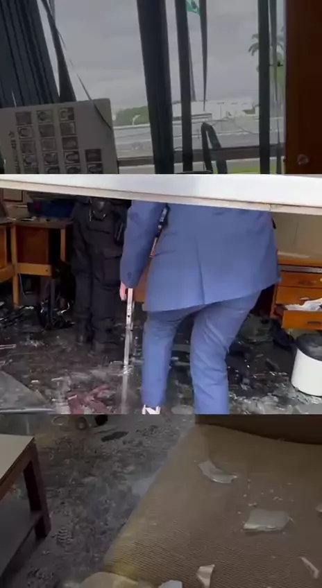 Essa é a situação que deixaram a liderança do @PTnaCamara Não são manifestantes, são terroristas, criminosos e golpistas! A gente exige justiça. #SemAnistiaPraGolpista