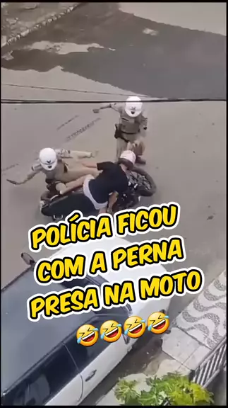 O policial derrubou o motoqueiro e ficou com a perna presa na moto 🤣 #viraliza #policia #motoqueiro #humorbrasil #quedademoto