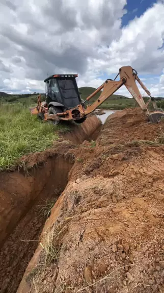 Fazendo encontro de vala #retroescavadeiranaveia #maquinaspesadas #copaFF
