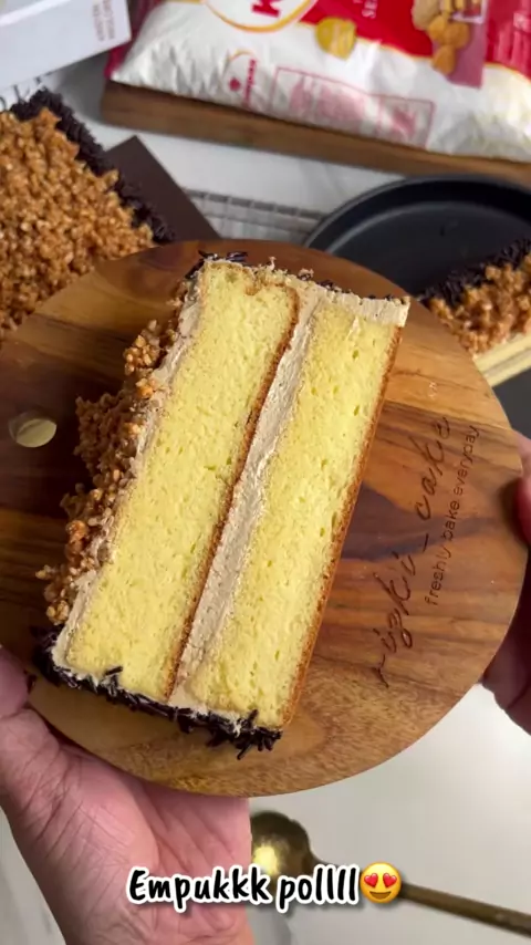 Cake vanilla topping nogat meses Rebake @rizki_cake Hasil 1 loyang ( 28x24x4 ) Bahan 6 butir telur utuh 90g gula pasir 70g tepung terigu KOMPAS premium 20g maizena 20g susu bubuk 10g cake emulsifier 120g butter leleh Buttercream moka 300g buttercream siap pakai ( hollman ) 10g pasta moka ( aduk kedua bahan sampai lembut ) Topping Meses Nogat Cara membuat. 1. Mixer telur, tepung, gula, maizena dan susu bubuk kocok hingga mengembang kental berjejak kecuali butter leleh. 2. Masukan bu...