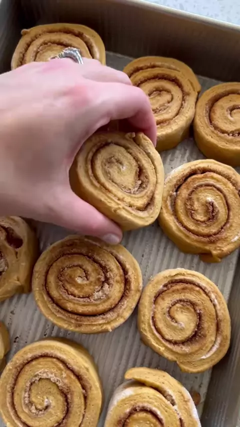 Sourdough Descarte Pumpkin Canela Rolls são o deleite de outono perfeito! Receita no link na minha bio. # sourdoughdiscard # sourdoughdiscardrecipe # cinnamonroll # pumpkinrecipes # pumpkincinnamonrolls