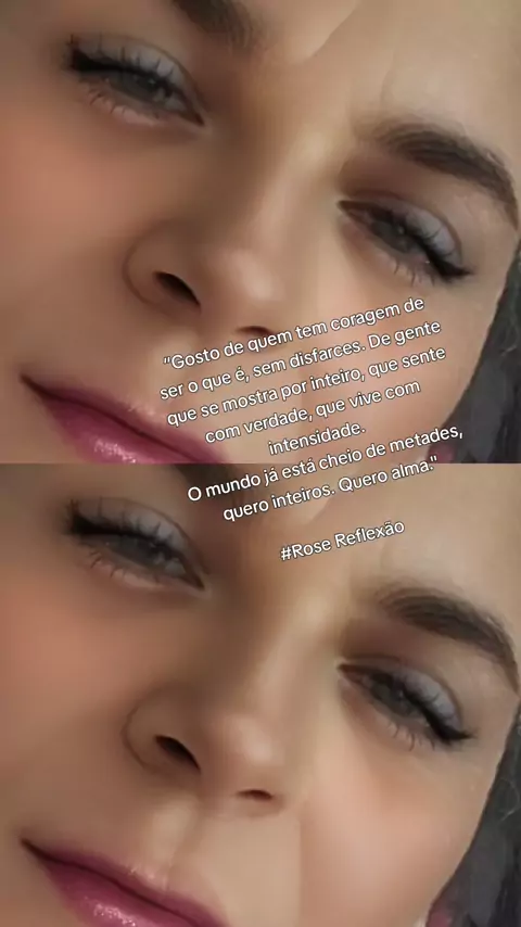 “Gosto de quem tem coragem de ser o que é, sem disfarces. De gente que se mostra por inteiro, que sente com verdade, que vive com intensidade. O mundo já está cheio de metades, quero inteiros. Quero alma." #Rose Reflexão