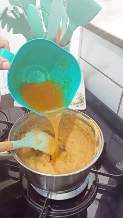 Preparando pirão com caldo de carne