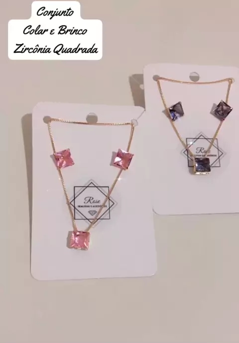馃拵Lindo Conjunto Colar e Brinco de Zirc么nia, semijoias finas banhadas a ouro 18 k! Siga na rede vizinha @rosesemijoiastj