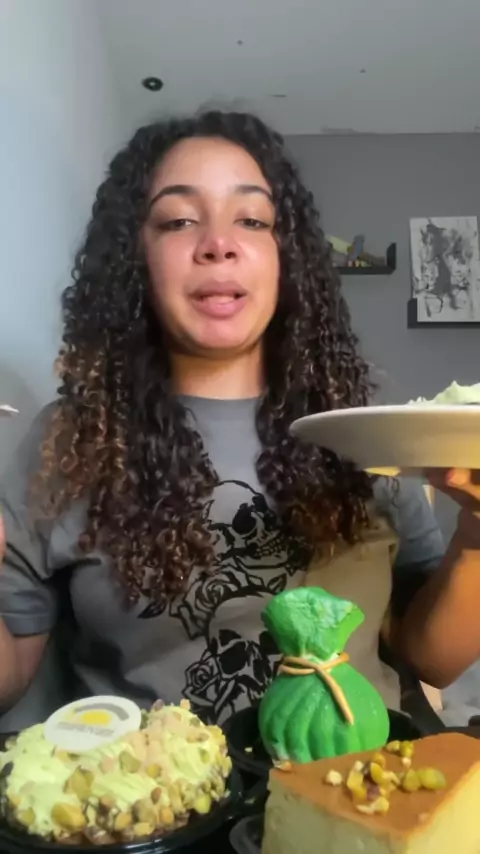 Provando doce de Pistache da padaria #Doces #pistache #Padaria