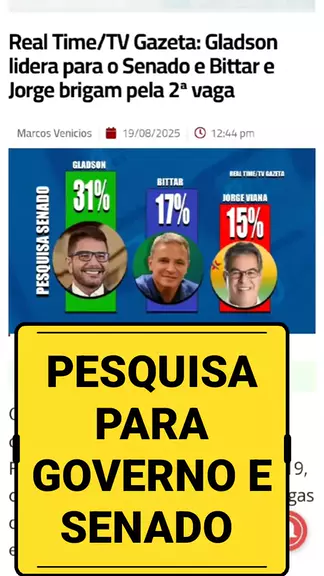 NOVA PESQUISA DE INTENÇAO DE VOTOS : ALAN RICK LIDERANÇA PARA O GOVERNO E GLADSON PARA O SENADO #PESQUISA #SENADO #GOVERNO