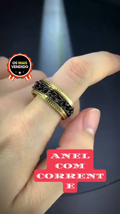#ANEL MASCULINO DOURADO COM CORRENTE