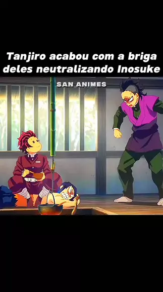 Tanjiro acabou com a briga deles neutralizando Inosuke... #anime #kwai #viral #fy