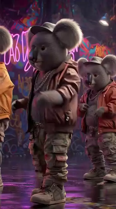 Koala Gang: A crew mais estilosa da selva chegou pra dominar o break dance! 🤘 Quem disse que koala não tem atitude? 🕶️ Esse flow tá no ponto! 🔥 Marque aquele seu amigo que dança no ritmo do eucalipto. #SDflowbeat #KwaiMusica #IAArt #danca