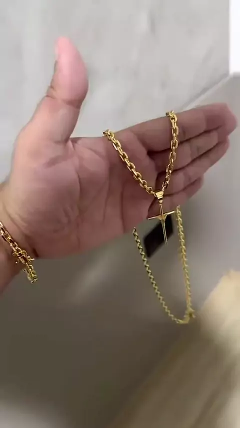 PROMOÇÃO Corrente + Pingente Cruz Palito Banhados a ouro 18k Cordão Masculina Crucifixo Moeda Antiga