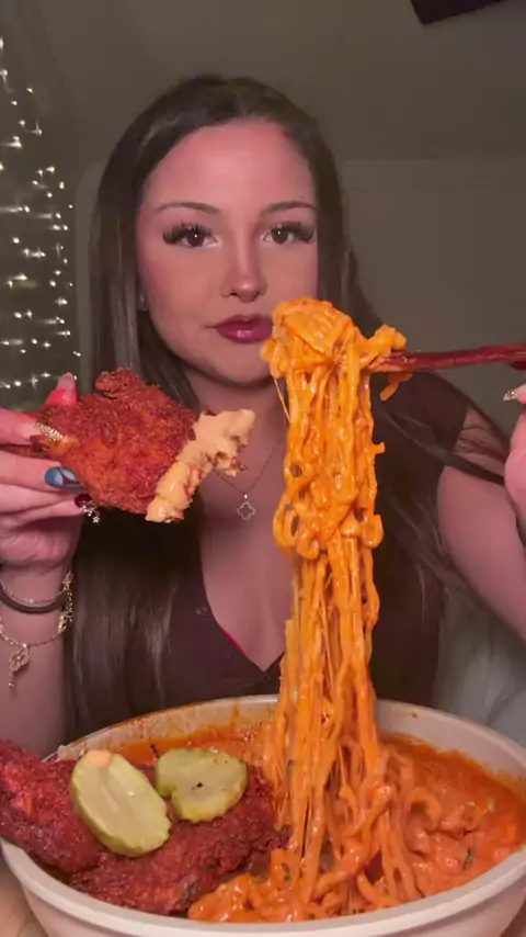 Dave's Hot Chicken Tenders with Buldak π @lilah.eats #foodtok #viralfood #mukbangs #crunchyasmr #chilismukbang