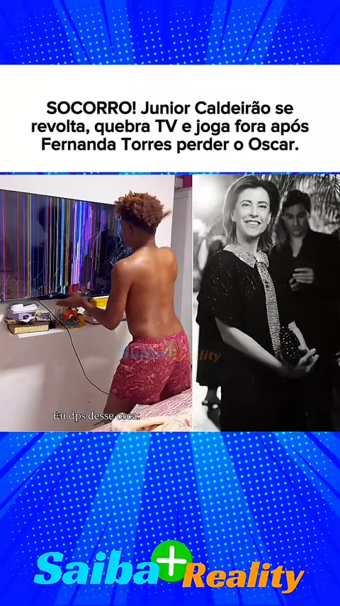 Junior Caldeirão quebra TV e joga fora após Fernanda Torres perder o Oscar de melhor atriz.