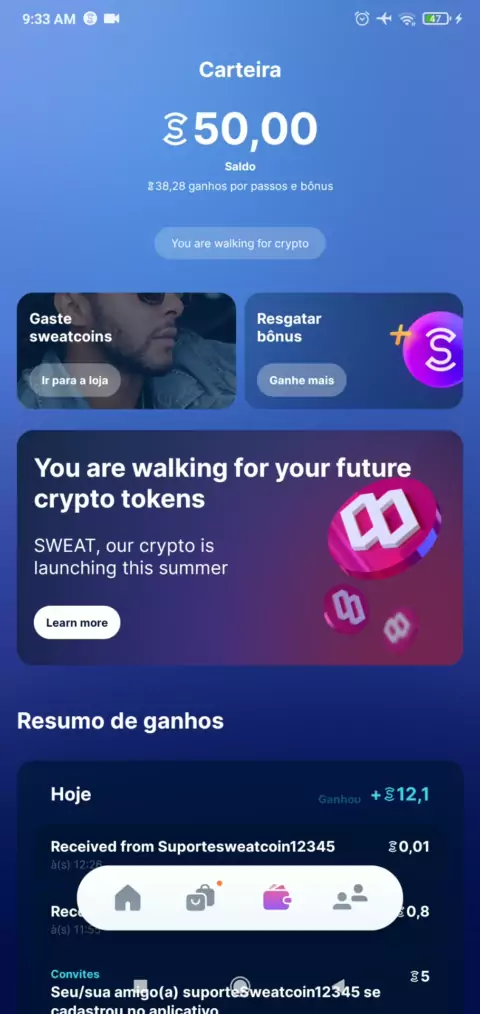 como sacar o dinheiro do SWEATCOIN