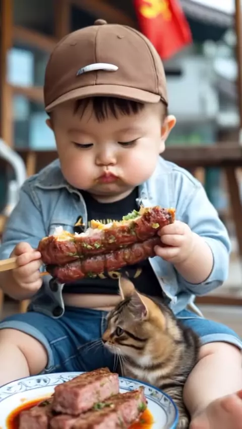 bayi sehat sedang makan #KontenSnackAI
