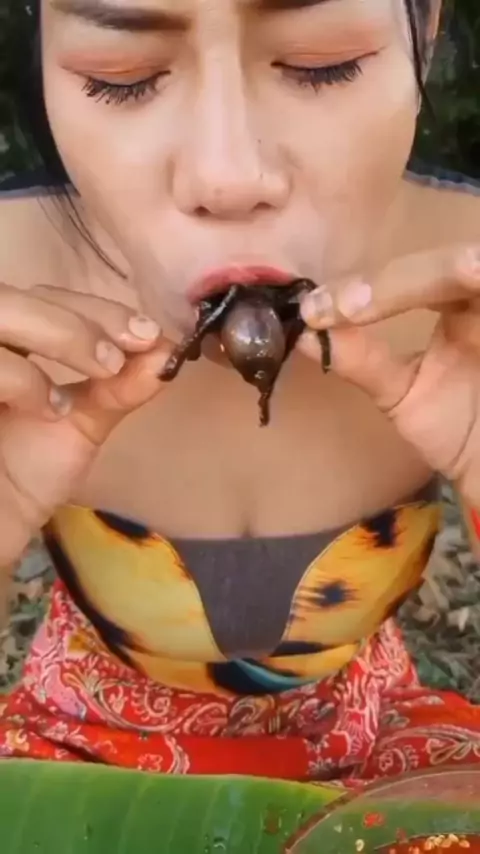 olha essa mulher comendo aranha com pimenta