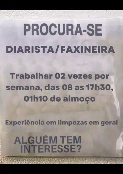 Vaga Para Diarista/ Faxineira. #oportunidade #empregos #seujobs