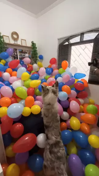 já surpreendeu seu cachorro com 500 bexigas hoje? 🤪 #cachorros #humor #pitbull #bordercollie #surpresa