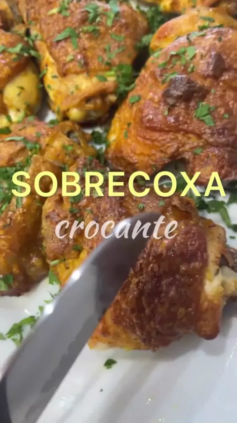 Sobrecoxa de frango crocante #frango #Receita #alimentação #massa #viral