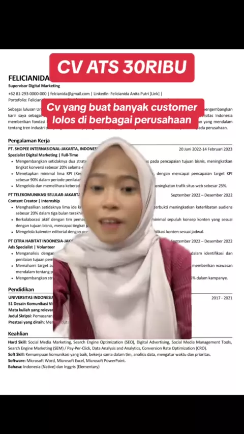 Banyak yang gapercaya ini dibuatin cv ats cuma 30rb😂 seriusan koo #ownerwova #jasacv #cvats #cvkreatif #jasacvmurah #keterimakerja #cvatsfriendly #loloskerja