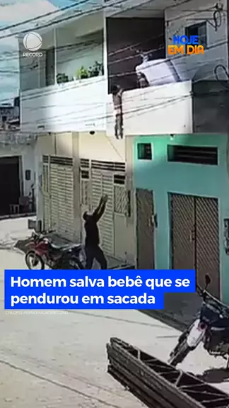 Homem salva bebê que se pendurou em sacada em Pernambuco. O rapaz conversou com a criança e até afastou a moto para evitar que ela se machucasse na queda. O menino estava na casa da avó e foi entregue à família sem ferimentos #HojeEmDia #RECORD