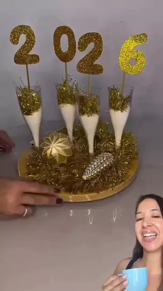 Ideia linda, fácil e econômica para decorar o Ano Novo. Com taças, sal grosso, festão dourado, EVA 2026 e luz de fada, o resultado fica simples, elegante e com cara de decoração planejada. Crédito: @dailyy.demae #decoracaodeanonovo #anonovo2026 #decoracaocaseira #ideiassimples #dicasdecoracao