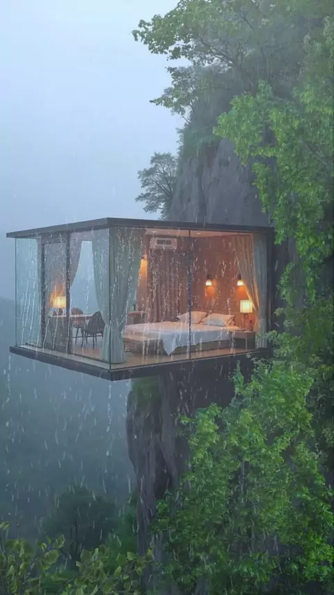 Rainy Day Nest: Cozy Cabin Comfort with Blankets and Heavy Showers #heavyrain #rainyday #cabinlife #lugareslindos