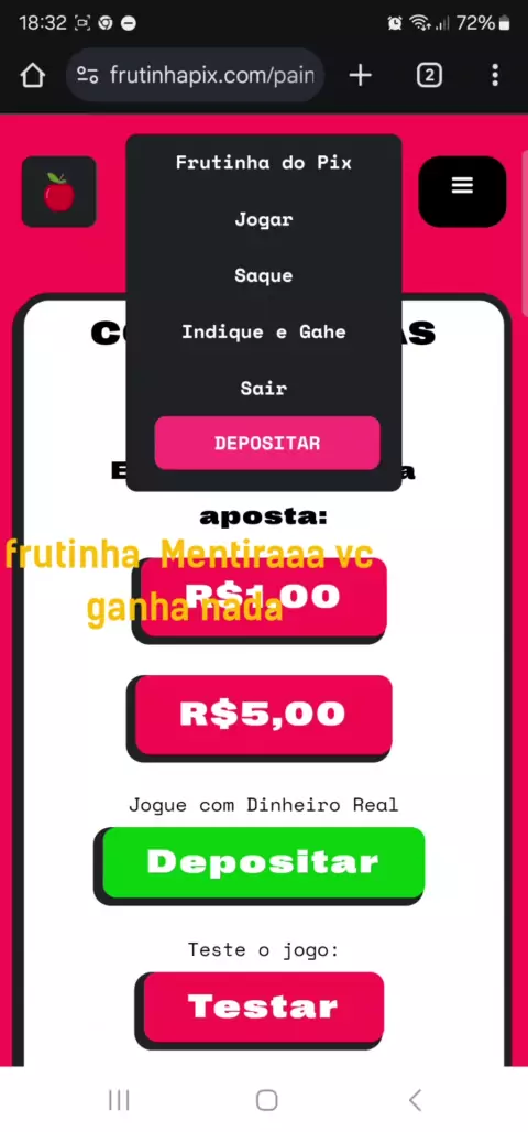 Fruta cortaaa. fiz Primeiro depósito de 50 reais mais não liberou saque em enganação. Melhor joga triginho