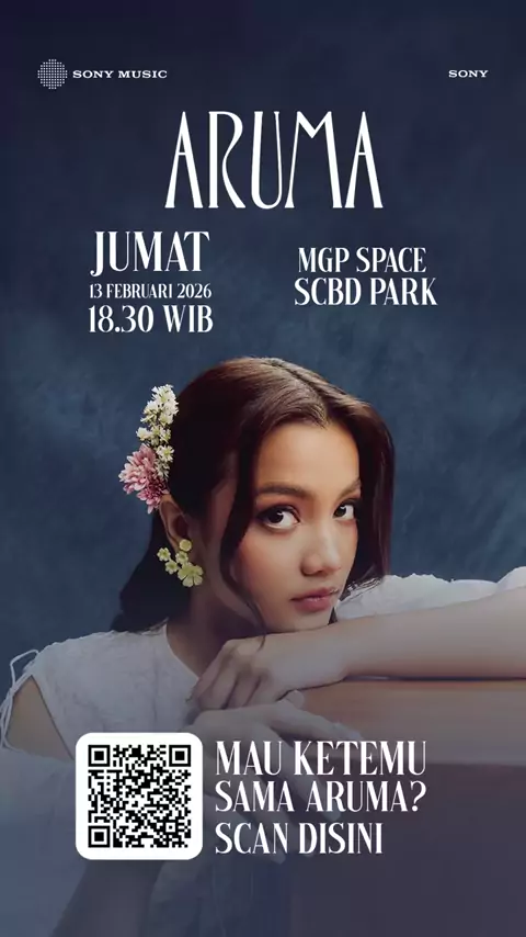 Bukan di . Bukan di playlist. ARUMA BENERAN AKAN NYANYI LIVE DI DEPAN KAMU. Jumat, 13 Feb 2026 MGP Space SCBD Park Jangan sampe cuman nonton di story orang. SCAN & DAFTAR sekarang! #aruma #scbdpark #sonymusicid # @Aruma