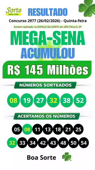 Resultado Mega-Sena concurso 2977 #sortemegasena #megasena #resultadomegasena #acumulou