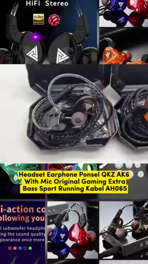 Headset Earphone Ponsel QKZ AK6 With Mic Original Gaming Extra Bass Sport Running Kabel AH065 #headset #headsetearphone #シ゚viral