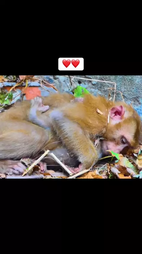 Seu rosto parece doloroso e assustado, isso pode ser considerado uma bela imagem de amor maternal # ❤ ️ # socute # baby # socutebaby # babymonkey # naughtymonkey # nature # monkeyfamily # fyb # for