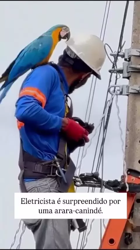 Eletricista é surpreendido por arara-canindé.#arara #animal #lindo #TOP