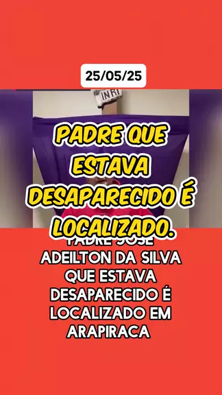 #padre #desaparecido #ENCONTRADO #noticias. Padre que estava desaparecido รฉ localizado em Arapiraca. 25/05/2025ee