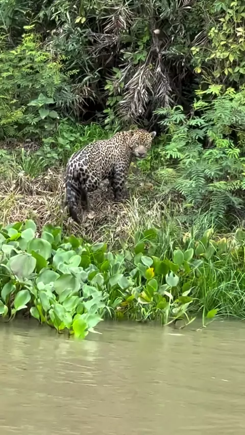 Onça pintada atravessando o Rio sena fantástica #Floresta #Amazônia