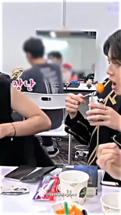 Jin queria comer um pedaço de ovo cozido com molho, mas Taehyung continuou olhando para ele, quando Jin o ofereceu, ele recusou, então Jin acabou comendo ovo cozido em sua boca. O olhar de V me faz rir, Taejin tão fofo😭🤭💜 𝐓𝐔𝐑𝐍 𝐎𝐍 𝐓𝐇𝐄 𝐍𝐎𝐓𝐈𝐅𝐈𝐂𝐀𝐓𝐈𝐎𝐍