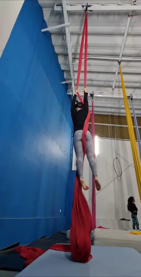 Tecido acrobático: queda cavalo marinho lateral . . . . . . #brasileiraonokwai #DebaixoDoCobertor #circus #aéreo #acrobatics