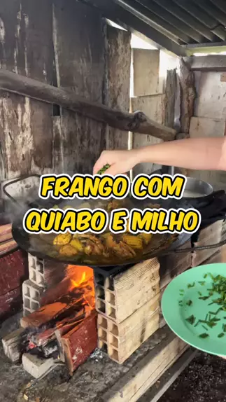 Frango com quiabo e milho na lenha