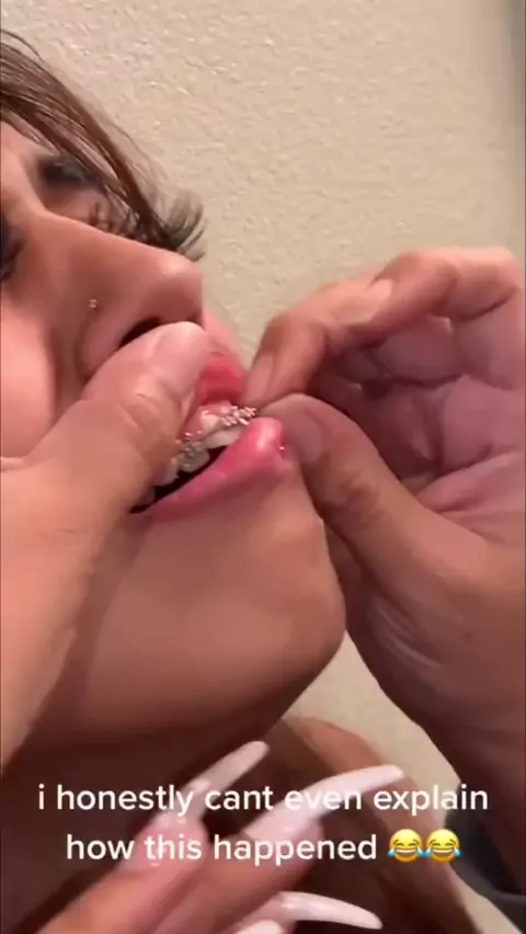 How does one even get a lip ring stuck in their braces ๐ #braces #lipring #reaction