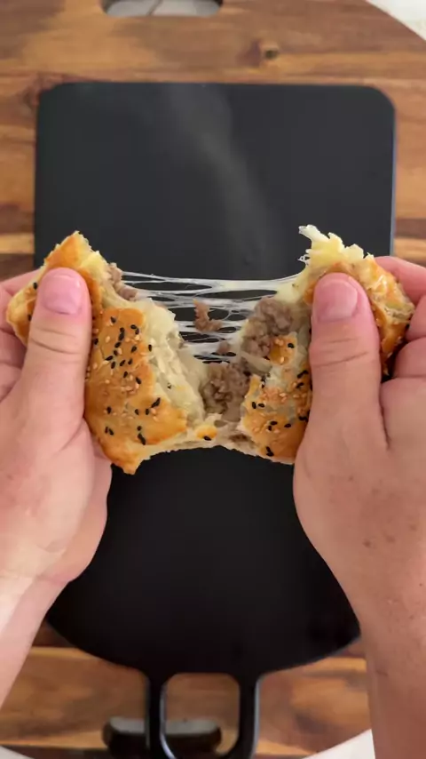 “It’s hot but I love it!” I just can’t wait for these Turkish hot pockets to cool down! 😂 Turkish Hot Pockets (Bohca Boregi) 1/2 lb (250g) ground beef I medium or small onion 2 Tbsp butter Salt + Pepper + spices to taste (I use Vegeta + black pepper) 1 package (2 sheets) puff pastry Shredded Mozzarella, Cheddar or other cheese of your preference Egg yolk wash Toasted sesame seeds + black sesame seeds (optional) Preheat oven to 400f (205c) 1. Sautee ground beef, onions, butter and spices unti...
