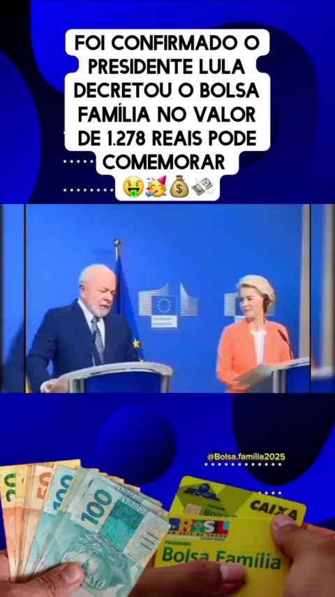 foi confirmado o presidente Lula decretou o bolsa família no valor de 1.278 reais pode comemorar 🤑🥳💰💸#bolsafamilia #viralnoticias #ultimasnoticias #maisviews #KwaiNotícia